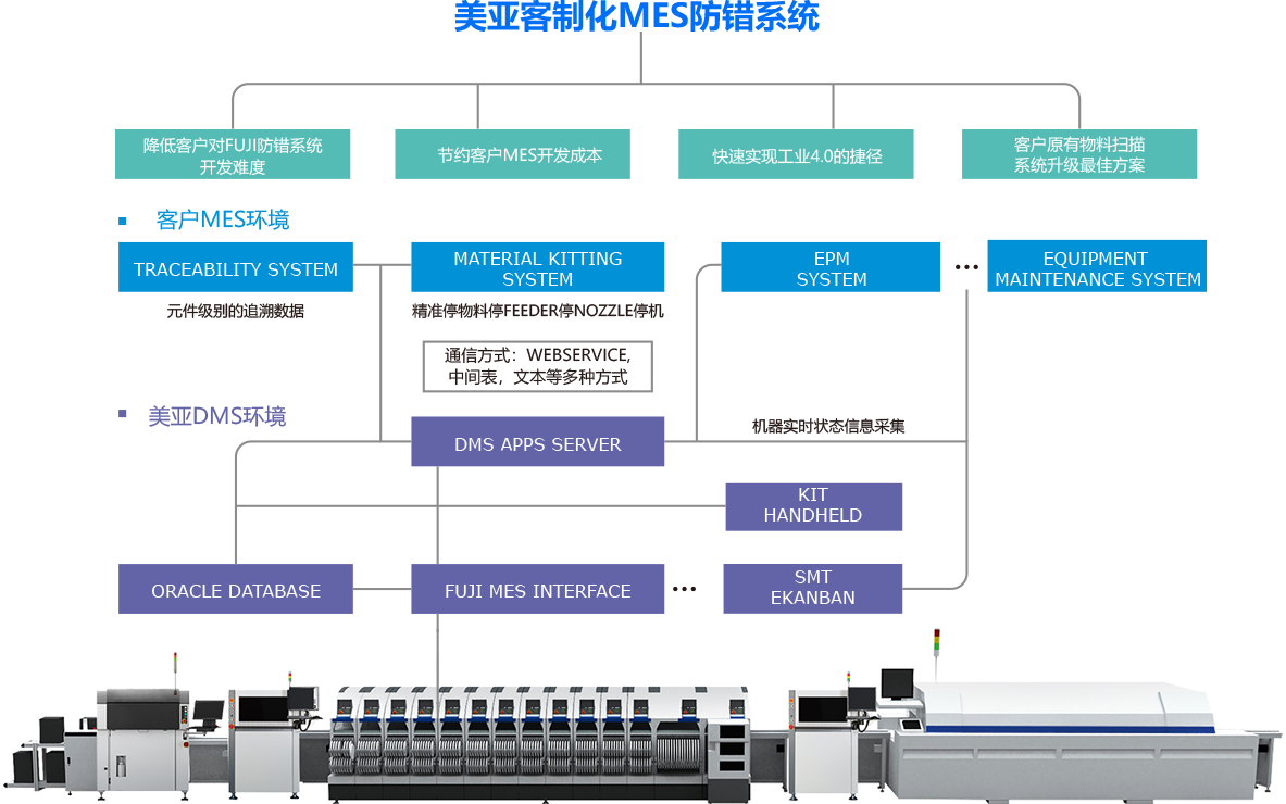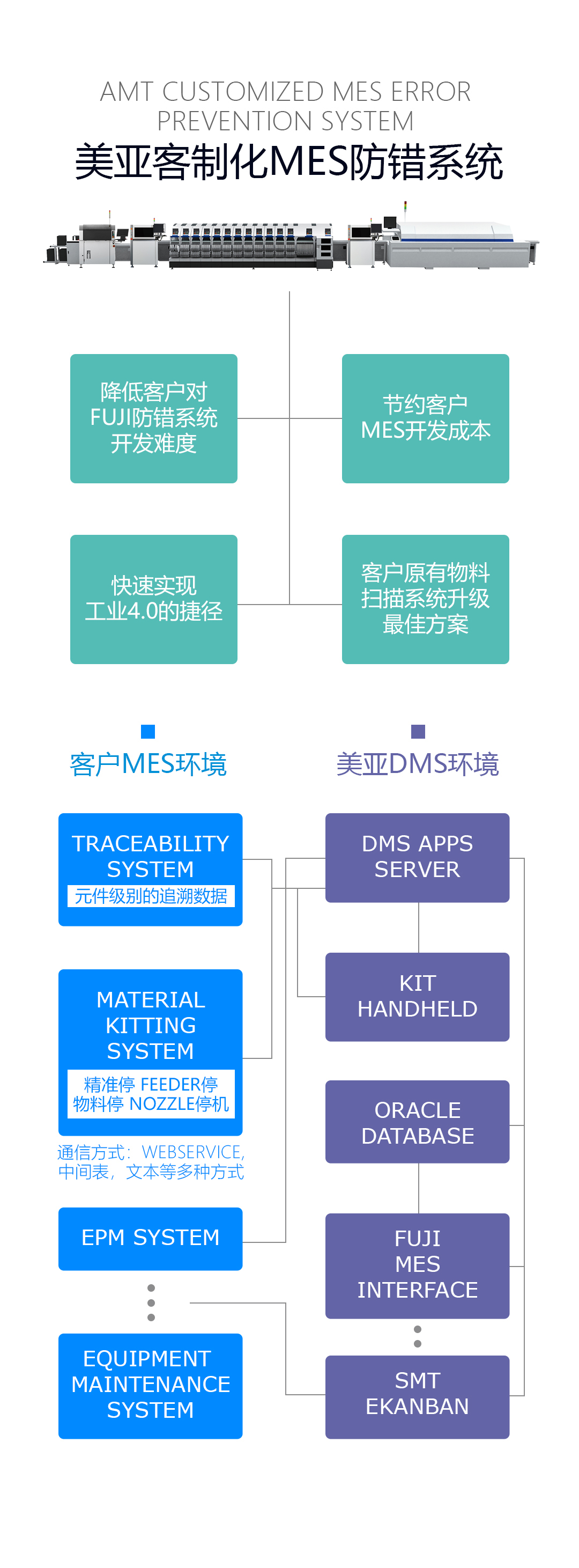 FUJI的机器很先进,它的接口开发需要开发者有很专业的FUJI设备经验,为加快客户的工业4.0的实施进度,美亚根据自己实力应势推出客制化MES防错系统。