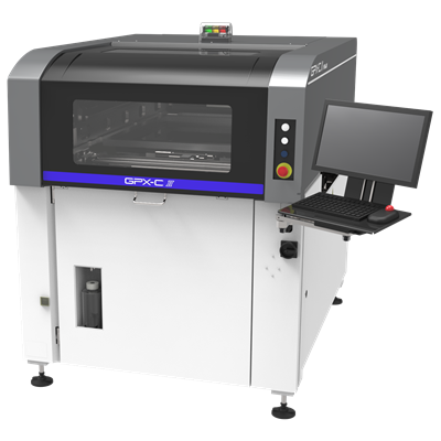 是一款实现了小型化、高面积生产率、单侧操作、操作 简单的印刷机。